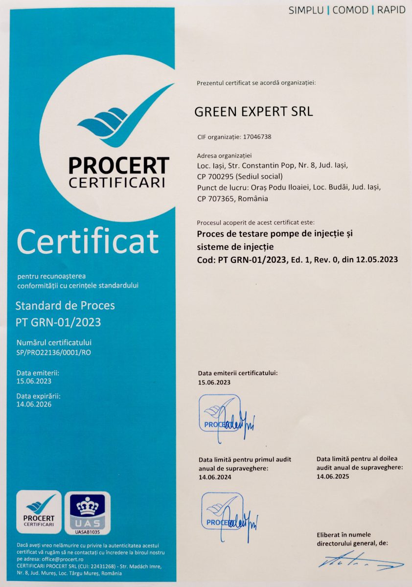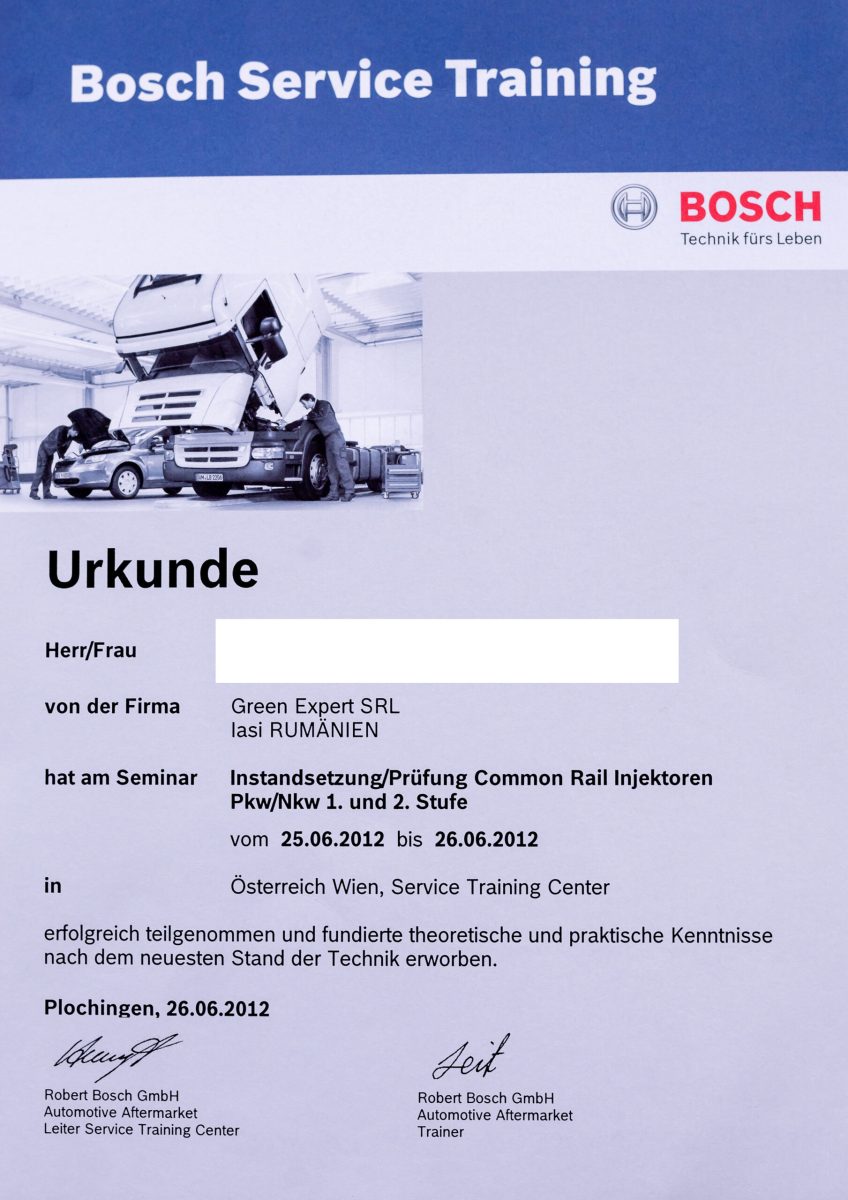 Dorim să vă oferim servicii de înaltă calitate, adaptate la viteza de schimbare a tehnologiei, așa că investim constant atât în echipamente, scule și accesorii noi, de ultimă generație, cât și în cursuri de specializare continuă. Astfel, ne asigurăm că atunci când apelați la serviciile noastre, veți beneficia de dotarea tehnică necesară și de personal calificat, cu competențe certificate, care să vă asigure calitatea serviciilor de testare și repare, atât pentru injectoare, cât și pentru pompe de injecție common rail. Având în vedere aceste aspecte, suntem autorizați ca serviciu de reparații diesel în rețelele internaționale BOSCH, CONTINENTAL și altele.